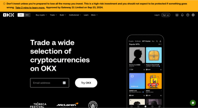 The OKX website makes it easy to sign up. Simply enter your email address and click the ‘Try OKX’ button.