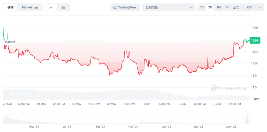 現在、MEXCなどの取引所で1トークンあたり約0.11ドル(約17円)で購入可能である。