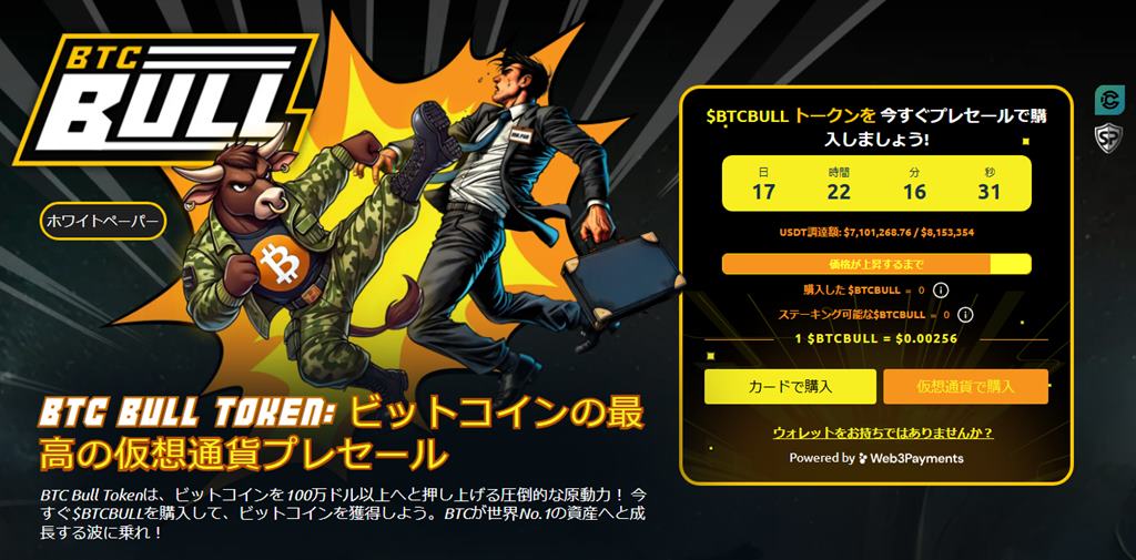 BTC Bull Token(BTCBULL)は、現在実施中のトークンプレセールで約700万ドル(約10億9,000万円)を調達し、大きな注目を集めている。