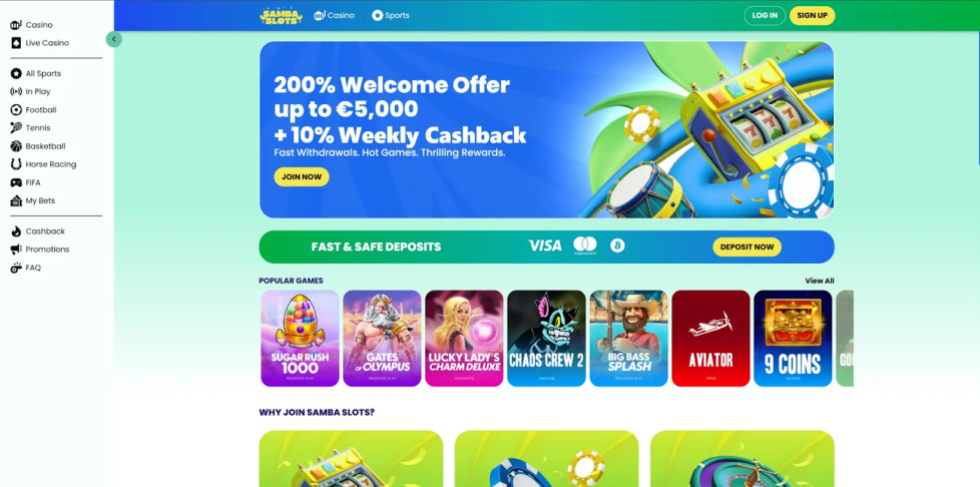 - Samba Slots — 支援Visa、Mastercard與10種以上幣種