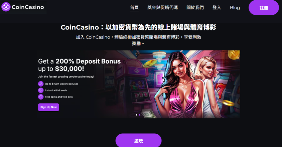 - Coin Casino — 採用多種加密貨幣,無手續費存提款,提供1,000多款遊戲