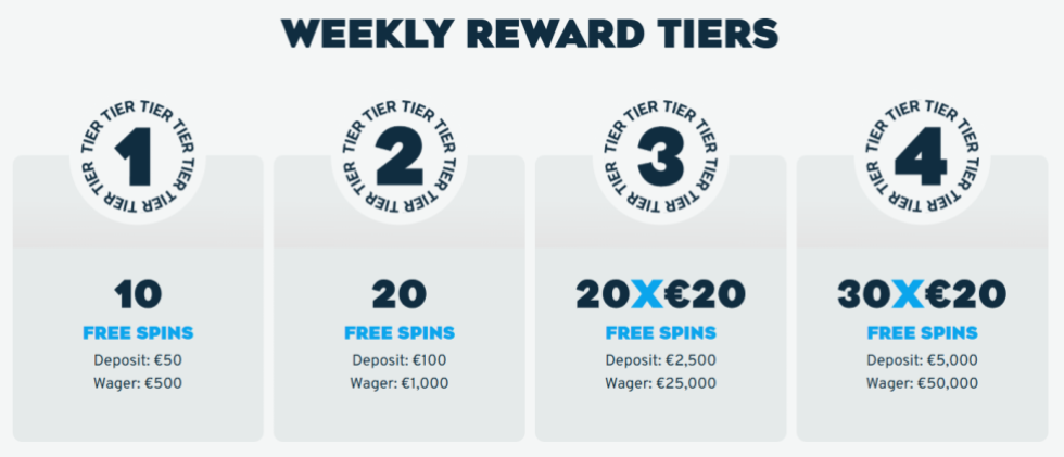 新用戶可享200%首存獎勵(上限$25,000)及50次《Wanted Dead or a Wild》免費旋轉。玩家每週三可獲兩次再儲值紅利,並參與「本週遊戲」活動,最多可得230次免費旋轉。平台同時舉辦高達$3,500獎金的老虎機競賽。
