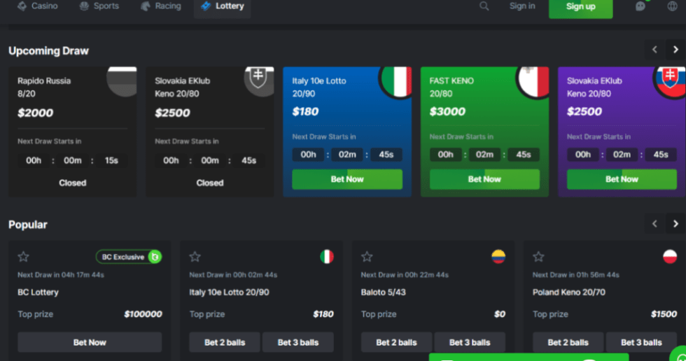 至於彩票,加密貨幣賭場網站也推出了可驗證公平的彩票遊戲。這類彩票由區塊鏈生成,確保結果透明且無法操控。與傳統彩票相同,玩家需先購買彩券,等待開獎。某些平台甚至提供價值數萬美元的加密頭獎,讓整體遊戲體驗更加刺激。