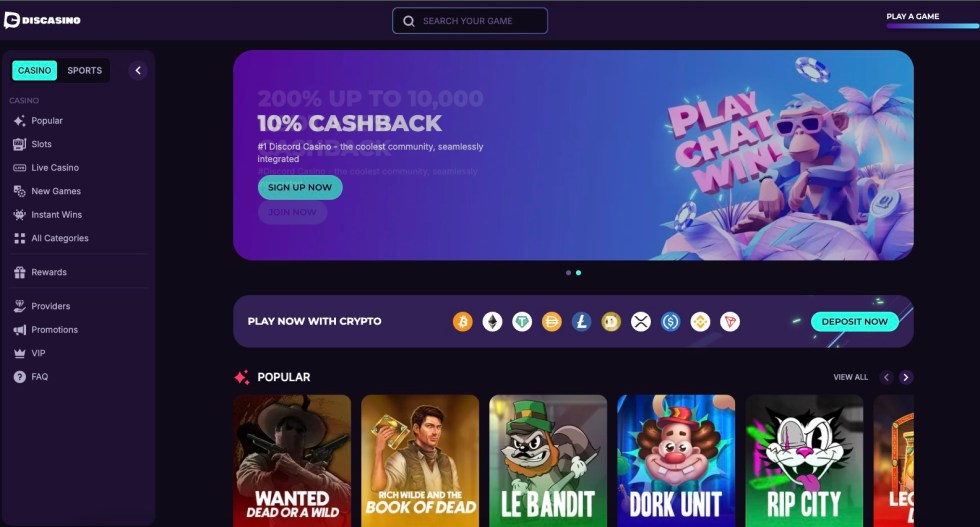 - Discasino –提供200%紅利與每週現金回饋,最高可領10,000美元,偏好高額優惠的玩家不容錯過。