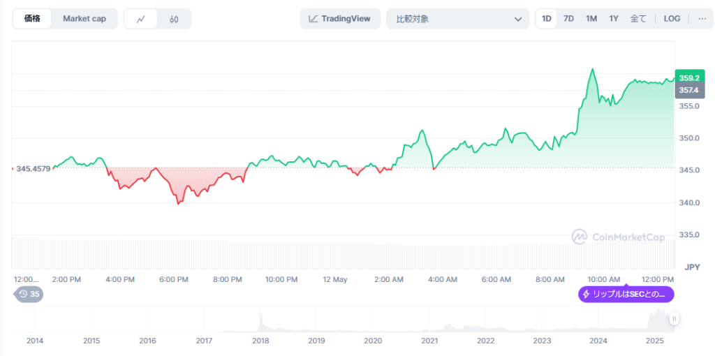 XRPはすでに2.30ドル(約36円)のレジスタンスを突破しており、週足での終値がこれを上回れば、史上最高値更新も現実味を帯びてくる。