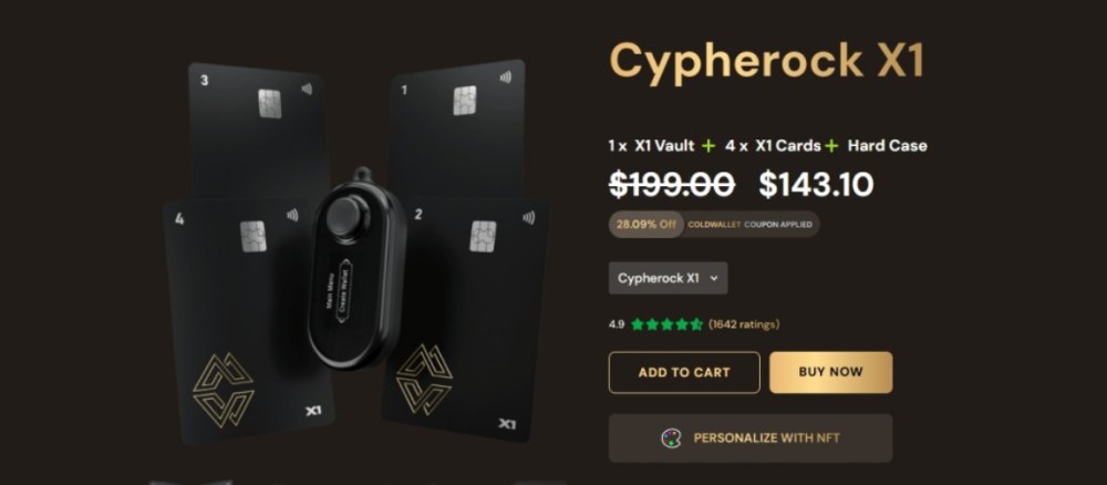 ราคาของ Cypherock X1 อยู่ที่ $159 ซึ่งมาพร้อม X1 Vault, X1 Cards จำนวน 4 ใบ และกล่องเก็บ โดยสามารถซื้อแต่ละชิ้นแยกได้ และเนื่องจากอุปกรณ์ดังกล่าวรองรับสินทรัพย์ดิจิทัลกว่า 9,000 รายการ