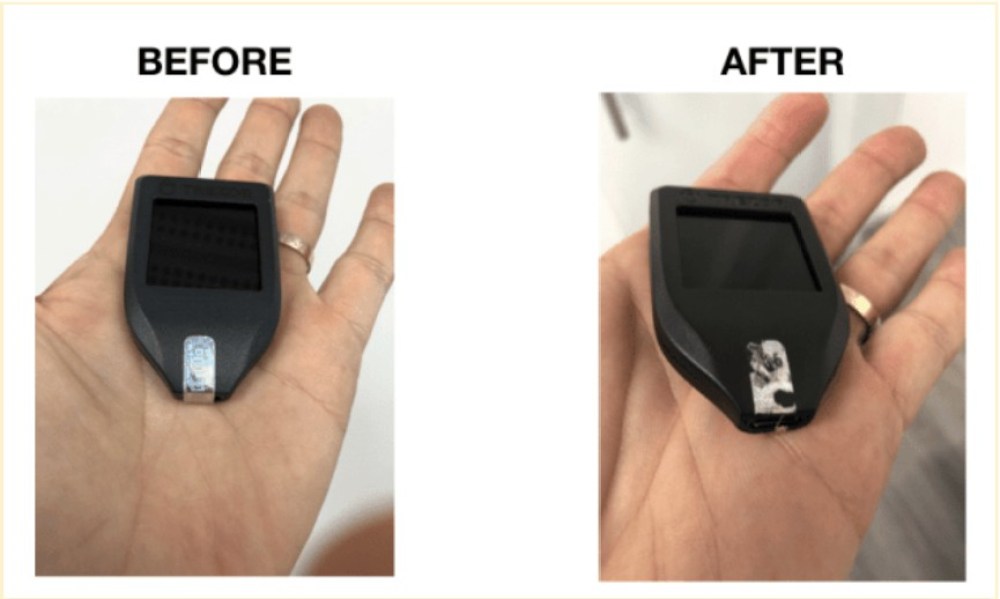 ในบางกรณี อุปกรณ์ Hardware Wallet อาจถูกดัดแปลงได้ หากต้องการหลีกเลี่ยงความเสี่ยงนี้ โปรดสังเกตว่าผู้ผลิตที่เชื่อถือได้ควรจะใช้สติกเกอร์โฮโลแกรมพิเศษ เพื่อยืนยันว่าอุปกรณ์นั้นไม่เคยถูกเปิดใช้งานมาก่อน ดังนั้นหมั่นตรวจสอบสภาพซีลความปลอดภัยก่อนใช้งานครั้งแรกเสมอ