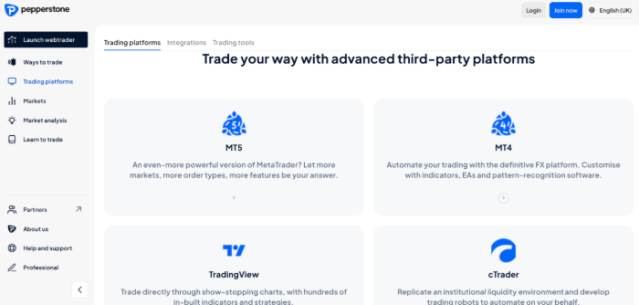 While Pepperstone’s MetaTrader offering is excellent, you should also explore its cTrader platform. It features a modern interface and advanced order options, including setting multiple take-profit levels.