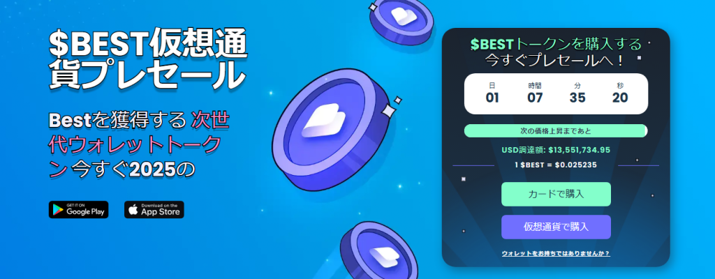 BESTトークンのプレセールはすでに1,360万ドル(約21億5,000万円)以上を調達しており、2025年末まで継続予定。ただし、配布上限に達し次第終了する。
