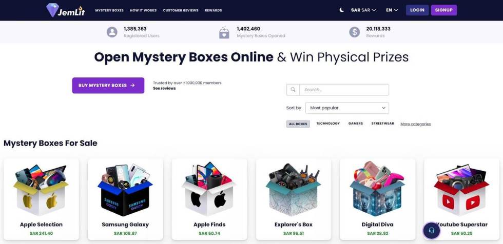 1. JemLit – منصة رائدة لمسابقات الربح الفوري عبر صناديق الحظ