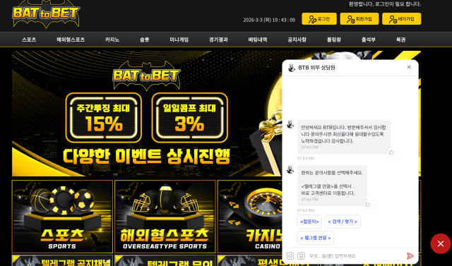 뱃투벳(BAT to BET)은 스포츠와 카지노를 동시에 운영하는 플랫폼으로, 바카라 이용자를 위한 환급형 혜택이 특징입니다. 카지노 이용 시 15% 캐시백과 2% 턴오버 리베이트를 제공해, 베팅 금액에 따른 실질적인 환급 효과를 기대할 수 있습니다.
