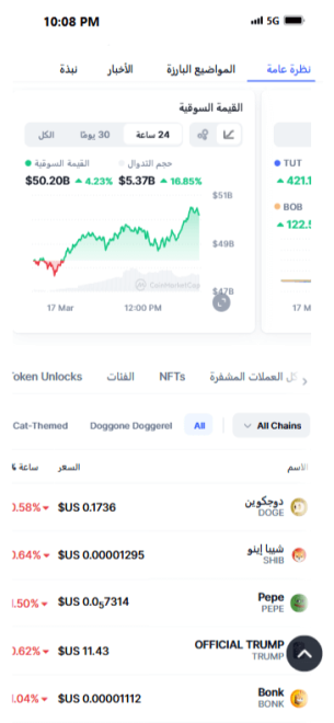 كما يمكن للمستثمرين استخدام هذه المعلومات لتحديد العملات التي تحقق أداءً جيدًا ومراقبة الاتجاهات السائدة في السوق. بالإضافة إلى ذلك، يوفر CoinMarketCap معلومات تفصيلية حول كل عملة، بما في ذلك: