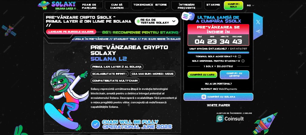 1. Solaxy ($SOLX) – Token Inovator Layer-2 pe Solana cu Creștere Rapidă