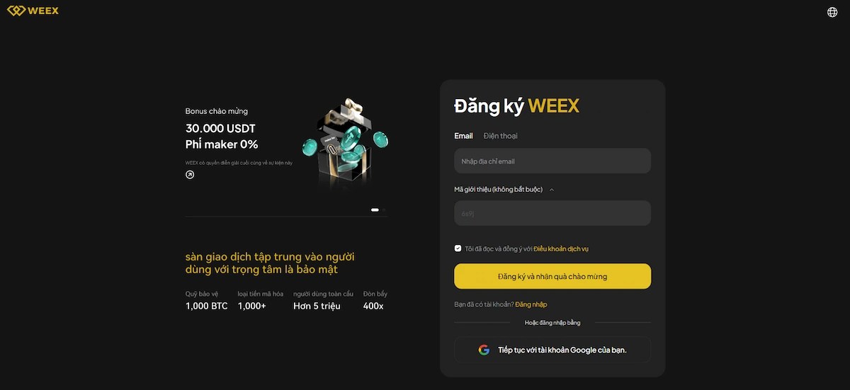 | Weex | Nhiều coin | 125x | 0,1% | Có | Không | Hạn chế ở một số khu vực |