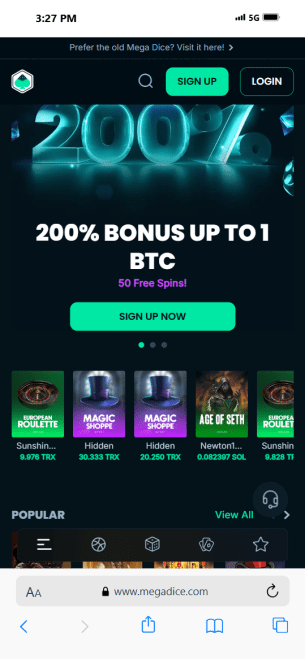 - Mega Dice: پلتفرمی مخصوص موبایل با پرداختهای رمزارزی پرسرعت و بازیهای تاسی – طراحیشده برای تجربهای سریع، آسان، و در دسترس از طریق موبایل.