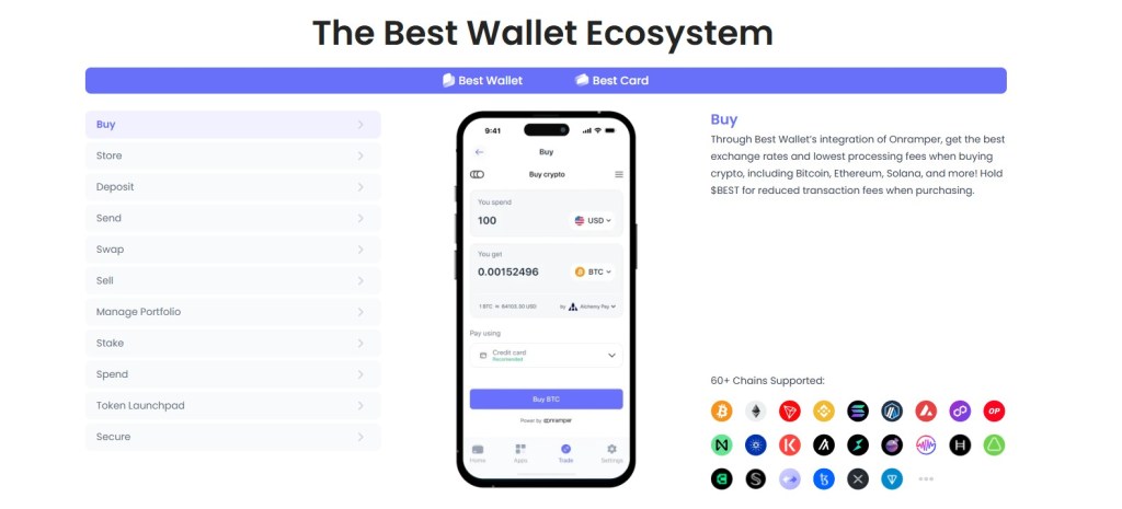 Apskatot labākās 2025. gada maku aplikācijas, Best Wallet izceļas kā lieliska izvēle lietotājiem, kuri meklē augstāko drošības līmeni un elastīgumu savu kriptovalūtu pārvaldībā. Neatkarīgi no tā, vai esat iesācējs kriptovalūtu pasaulē vai pieredzējis investors, Best Wallet piedāvā funkcijas, kas nepieciešamas drošai un efektīvai aktīvu pārvaldībai.