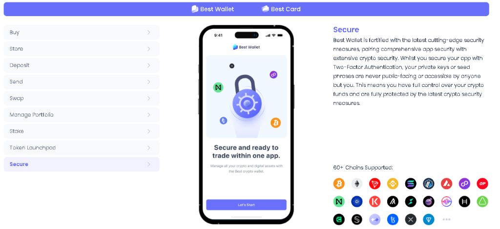 Best Wallet također naglašava važnost institucionalnog nivoa sigurnosti za kupovinu bitcoina kroz svoj multi-chain novčanik.
