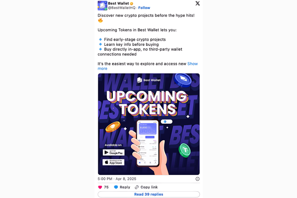 Το token $BEST βρίσκεται αυτή τη στιγμή σε φάση presale, ξεκλειδώνοντας premium δυνατότητες μέσα στο οικοσύστημα του πορτοφολιού – από προηγμένες λειτουργίες έως εξειδικευμένες επιλογές για διασυνοριακές συναλλαγές. Η προπώληση εξελίσσεται σε μία από τις πιο δυναμικές του 2025.