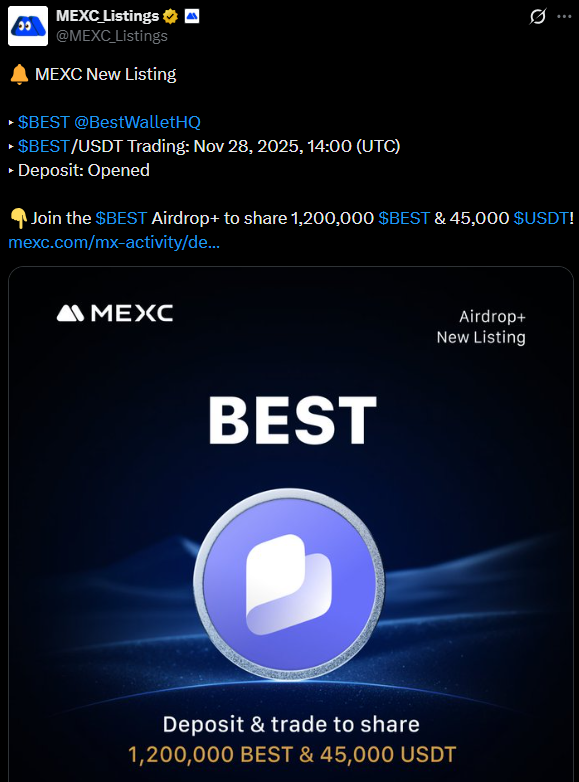 Best Wallet token BEST na MEXC launch november 2025