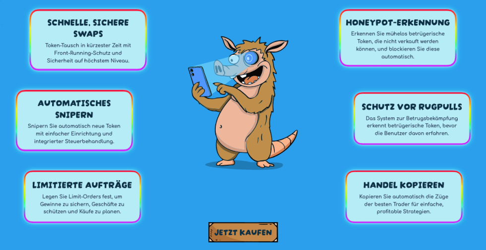 Hier können Anleger gerade noch zu einem attraktiven Einstiegspreis von 0,0951 $ in den Snorter-Coin investieren. Die Meme-Coin-Komponente mit dem Maskottchen des Ameisenbären wird jedoch auch um echte Utility ergänzt, die Entwickler dem Meme Coin auch einen USP verschafft haben und ihn so von der Konkurrenz abheben wollen.