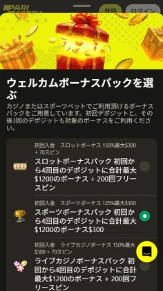 - Parimatch(パリマッチ):最高1200ドルまでの350%ボーナスを使って約9,000種類のカジノゲームを堪能。