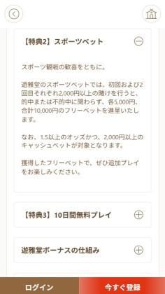 - Yuugado(遊雅堂):総額12万円越えのウェルカムオファーに加えスポーツフリーベットも付帯。