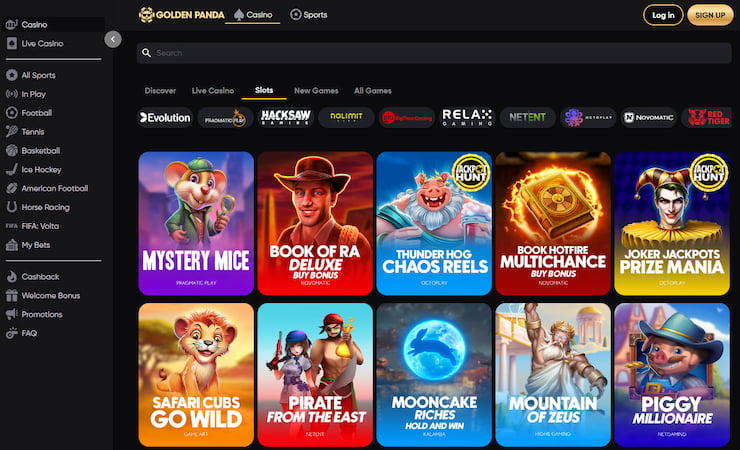 GoldenPanda kazino piedāvā spēlētājiem unikālu Āzijas iedvesmotu spēļu pieredzi, kā arī izdevīgus bonusus. Jaunie klienti saņem 40 bezmaksas griezienus bez depozīta. Turklāt, spēlējot populāro spēli Book of Ra Deluxe, spēlētāji var iegūt papildu bonusus, veicot minimālo depozītu.