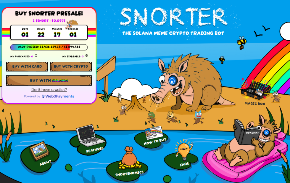 Snorter ($SNORT) ir mēmu tematikas žetons, kas vienlaikus ir arī spēcīgs tirdzniecības rīks. Tas darbojas kā Telegram “native sniping bot”, kas ir paredzēts, lai veiktu žetonu apmaiņu sekundes daļās, dodot lietotājiem priekšrocības jaunu monētu iegūšanā tieši to izlaišanas brīdī. Šī unikālā lietderība atšķir Snorter no tipiskajām mēmu monētām – turētāji faktiski gūst labumu no žetona, saņemot piekļuvi tā tirdzniecības bota pakalpojumiem.