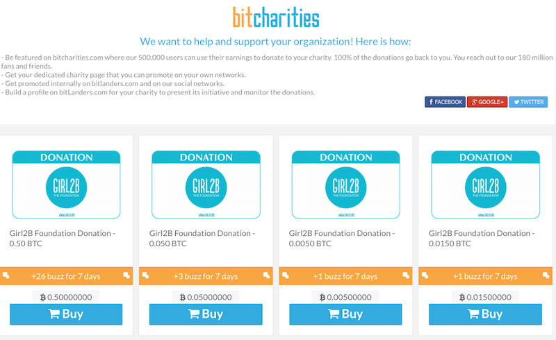 BitLanders, recently launched BitCharities.com, its dedicated Charity Page open to all non-profits. On BitCharities.com, bitLanders’ 500,000 users can use the Bitcoin earned on the platform to donate to charities and organizations. bitLanders gives 100% of the donations back to the charities.