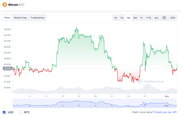 BTC 1-month price chart, 2 May 2023, source: CoinMarketCap