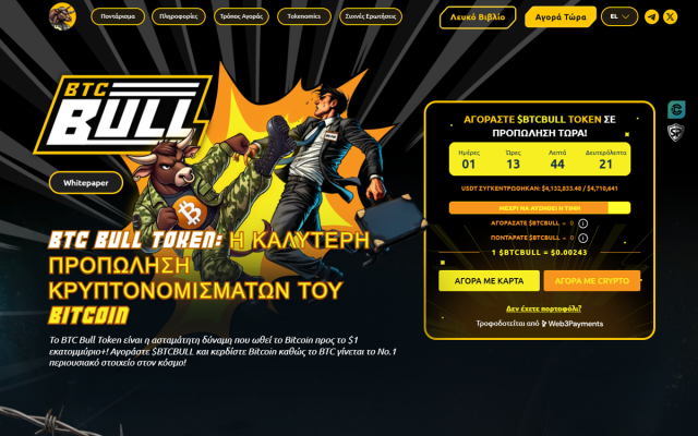 Καθώς η αγορά προσπαθεί να βρει κατεύθυνση, το BTC Bull Token συνεχίζει να συγκεντρώνει κεφάλαια, καθώς όλο και περισσότεροι επενδυτές στρέφονται σε tokens που προσφέρουν παθητικά έσοδα σε Bitcoin. Η τιμή του $BTCBULL ανέρχεται αυτή τη στιγμή στα 0,00243$ ανά token, ωστόσο θα αυξηθεί πολύ σύντομα. Η ζήτηση παραμένει ισχυρή, με τους επενδυτές να το βλέπουν ως μια ευκαιρία έκθεσης στο Bitcoin χωρίς τον βραχυπρόθεσμο κίνδυνο κατοχής BTC.