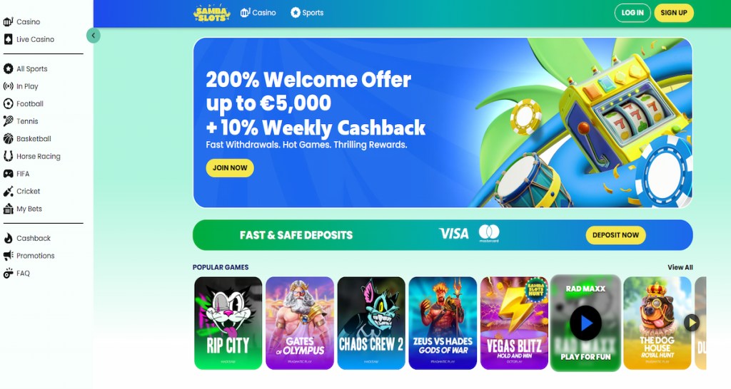 Samba Slots přináší do světa online hazardu exotickou atmosféru díky svým tematickým automatům inspirovaným Jižní Amerikou. Kromě klasických slotů nabízí i živé hry s dealery, což zajišťuje dynamickou zábavu.