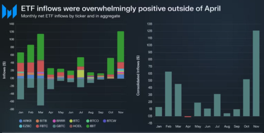 Novembris bija izšķirošs mēnesis. Pēc Trampa atkārtotas ievēlēšanas Bitcoin cena strauji pieauga viņa pro-kripto nostājas dēļ. 7. novembrī cena sasniedza 76 999 ASV dolārus, bet līdz 13. novembrim tā pārsniedza 91 000 ASV dolāriem. Tirgu pārņēma optimisms, pateicoties Trampa solījumiem, tostarp “Stratēģiskā Bitcoin rezervju” izveidošanai.