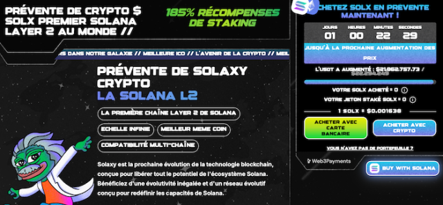 Avec une levée de fonds de près de 22 millions de dollars et un engouement croissant, Solaxy pourrait s’imposer comme l’une des ICO les plus prometteuses de 2025. Son modèle économique attractif et son potentiel de croissance en font un projet à surveiller de près.