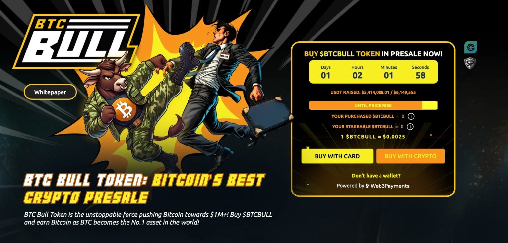 Dieses einzigartige Konzept sorgt derzeit für großes Interesse. Anleger können sowohl vom Wertzuwachs von $BTCBULL als auch von der Bitcoin-Rallye profitieren. Daher wurden bereits über 5,4 Millionen Dollar in den neuen Coin investiert, obwohl $BTCBULL noch gar nicht an den Börsen gehandelt wird, sondern derzeit noch im Vorverkauf erhältlich ist. Für Investoren bedeutet das, dass sie den Coin noch zum günstigen Fixpreis kaufen können, während Analysten erwarten, dass der Kurs nach dem Listing an den Börsen schnell explodieren könnte.