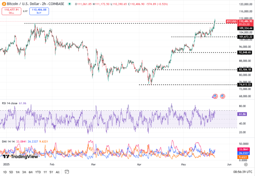Op dit moment handelt BTC op een waarde van $110.486 en de cryptoleider lijkt zich klaar te stomen voor de volgende opwaartse beweging.