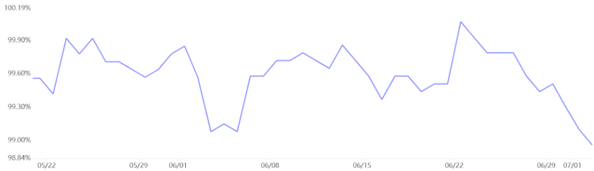 Uit maandag gepubliceerde data blijkt dat de brede geldhoeveelheid (M2) in de eurozone in april met 2,7% is toegenomen ten opzichte van een jaar eerder. Er wordt dus meer geld bijgedrukt, hoogstwaarschijnlijk om de economie te stimuleren. Tegelijkertijd liet ADP data zien dat de Amerikaanse private payrolls in juni met 33.000 zijn gedaald, wat wijst op een afkoelende arbeidsmarkt in de VS.