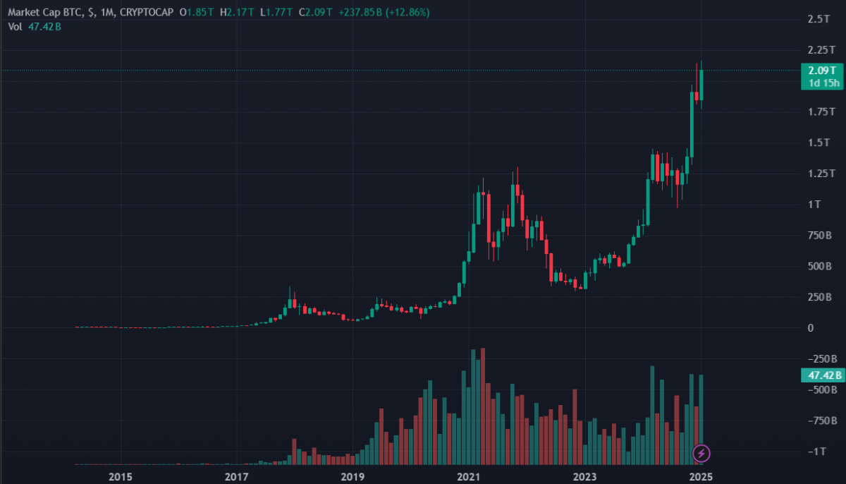 สำหรับการหาค่าของความเป็นไปได้ที่บิทคอยน์จะสามารถทำราคาทะยานไปถึง $200,000 ได้นั้น เราต้องพิจารณาเรื่องมูลค่าตลาดด้วย ปัจจุบันมูลค่าตลาดของบิทคอยน์ อยู่ที่มากกว่า $2 trillion และหากจะไปถึงราคา $200,000 มูลค่าตลาดจะต้องเพิ่มขึ้นเป็นประมาณ $4 trillion ซึ่งความแตกต่าง $2 trillion นี้จะต้องการปริมาณ BTC จํานวนมากในการเปลี่ยนแปลงมือระหว่างผู้ถือ