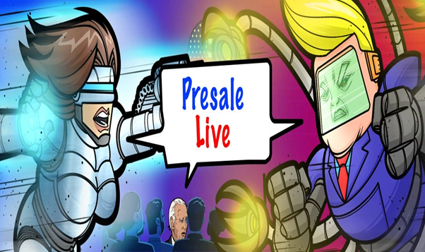 Built on the Ethereum blockchain, the project features two satirical, mechanized characters: MAGATRON and Kamacop 9000, loosely based on U.S. political figures.