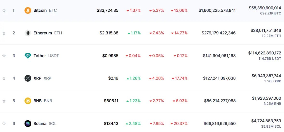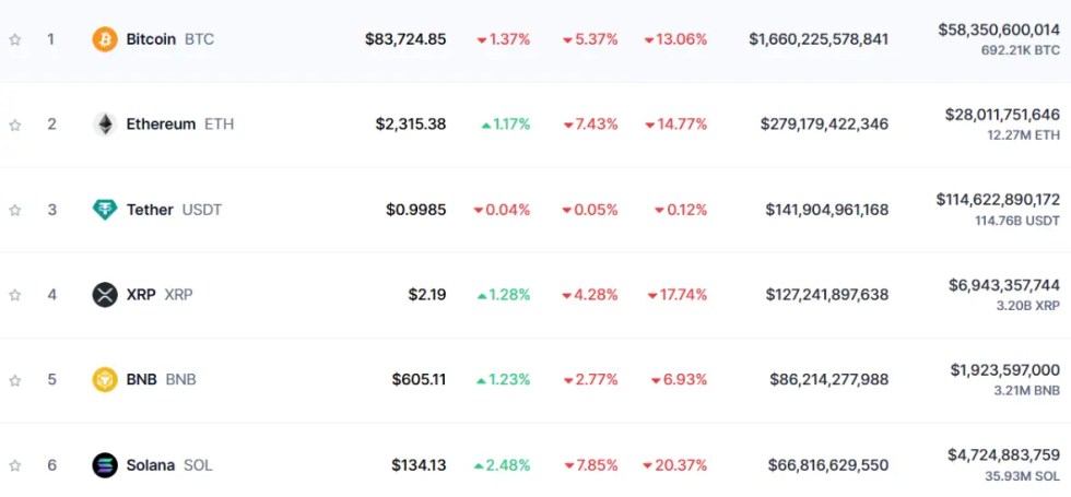 (Donald Trumps geplante Zölle haben die Kurse aller großen Coins nach unten gedrückt – Quelle: coinmarketcap.com)