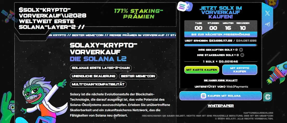 Jetzt rechtzeitig einsteigen und Solaxy im Presale kaufen.