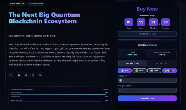 BMIC represents that kind of positioning. It is not trying to time the bottom of Bitcoin. It is building the security layer that will protect every crypto holding once the quantum threat becomes mainstream. The presale is still in its early phases, and prices are set to increase. Early supporters are already in.