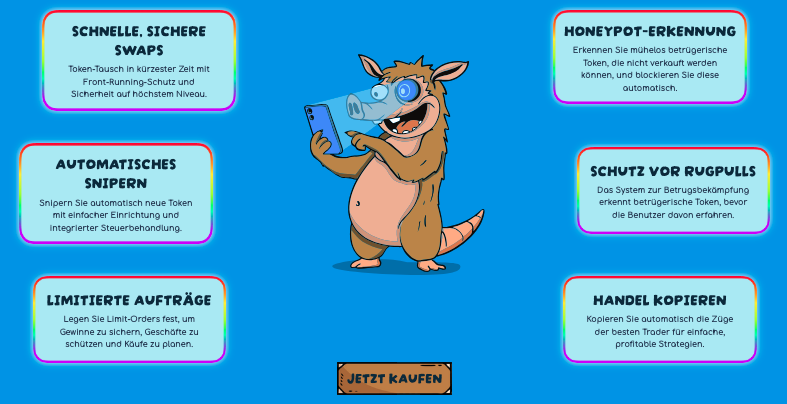 Das Team von Snorter verfolgt mit dem lustigen Maskottchen und der humoristischen Aufmachung der Website zum einen einen Meme-Coin-Ansatz. Andererseits steht jedoch auch die Entwicklung des sogenannten Snorter Bots im Fokus der Entwickler. Hierbei soll es sich um einen Telegram-Trading-Bot handeln, mit dem die Snorter-Community in Zukunft ihre Lieblingscoins direkt im Chat in der Telegram-App traden können soll.