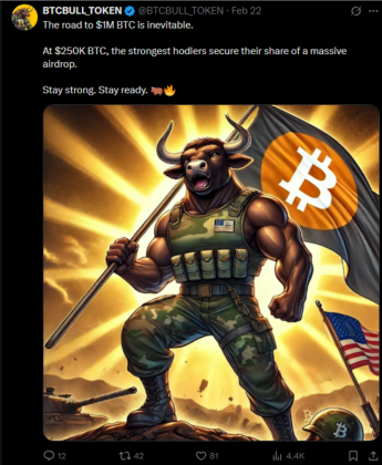 Первая бесплатная раздача активов произойдет, когда Bitcoin поднимется до $150 000. Затем выплаты будут производиться при каждом росте цены на $50 000, то есть на уровнях в $200 000, $250 000 и далее. Обладатели $BTCBULL получают Биткоин пропорционально количеству принадлежащих им токенов проекта. Это поощряет долгосрочное владение криптовалютой BTC Bull Token.