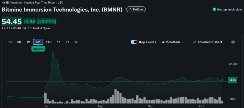 Attualmente, le azioni BMNR sono in rialzo del 3,4%, scambiando a 54,45 dollari al momento della stesura.