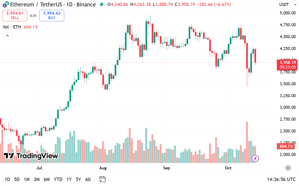 Al momento della stesura, ETH viene scambiato a 3.958 dollari.