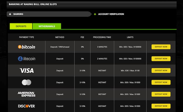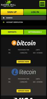 To get started playing online mobile blackjack games at Raging Bull, you can make deposits with crypto and credit cards. Maximum deposits are limited to $100,000, and the payouts take between 7-10 days.