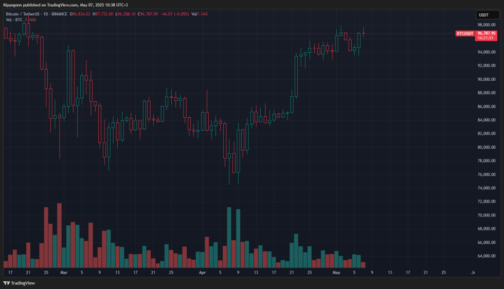 Rudarji Bitcoinov, ki običajno prodajajo, ko so cene visoke, so v zadnjem mesecu upočasnili likvidacijo. Po podatkih podjetja CryptoQuant je bilo 6. maja prodanih le 5.678 BTC, medtem ko je bilo 7. aprila prodanih 15.767 BTC.