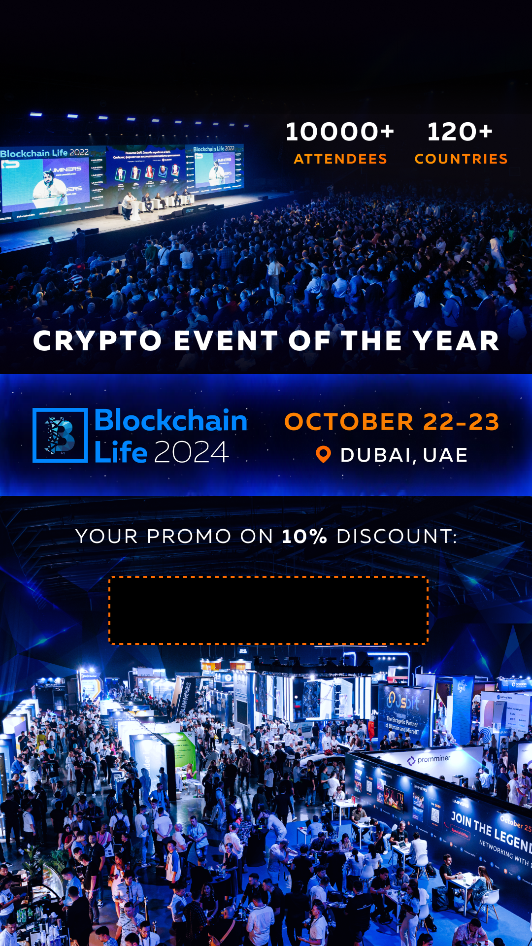 On October 22-23, the legendary Blockchain Life 2024 forum will take place in Dubai. Over 10,000 participants from 120 countries will come together for the crypto event of the year to share insider information on the eve of Bull Run 2025.