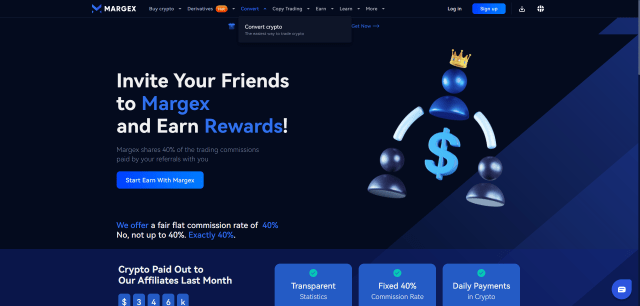 W ramach swojego programu partnerskiego Margex nagradza użytkowników, którzy zapraszają znajomych na platformę. Udostępniając swój link polecający, użytkownicy mogą zarobić aż do 40% prowizji wygenerowanych przez poleconych znajomych. Nagrody są przyznawane w bitcoinach i można je sprawdzić w specjalnej sekcji na pulpicie nawigacyjnym.